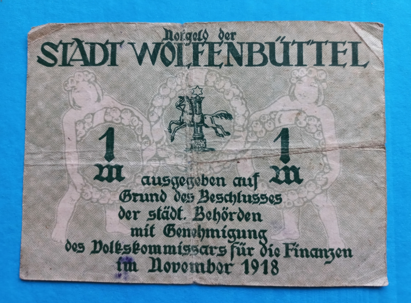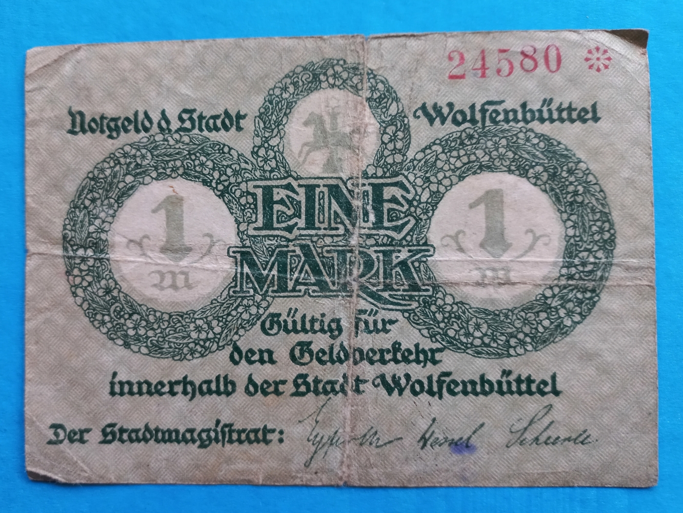 1 Mark German Emergency Currency Note (Notegeld) 1918, serial# B70150