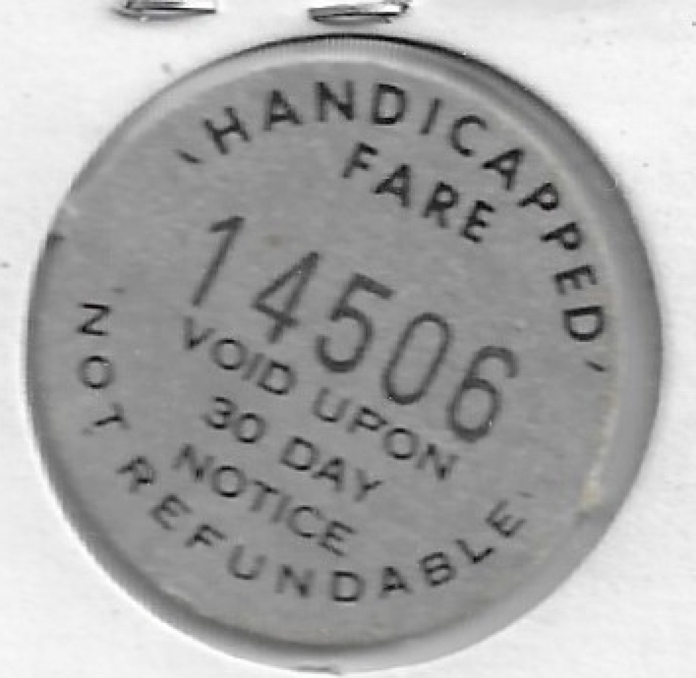 | Back Description : | Token number. HANDICAPPED FARE VOID UPON 30 DAY NOTICE NOT REFUNDABLE |